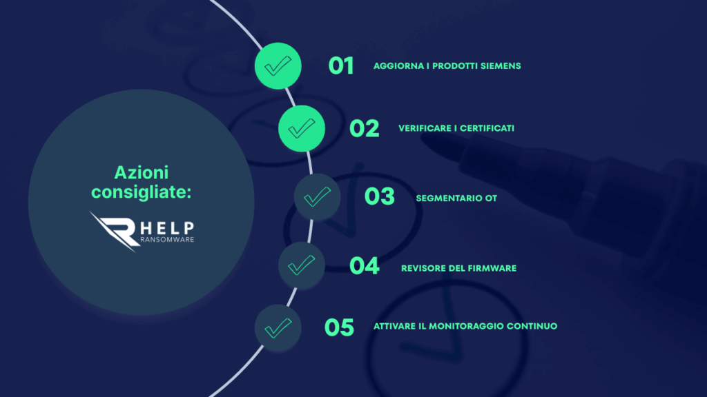 Siemens ha pubblicato aggiornamenti e raccomandazioni specifici, ma la sicurezza OT richiede un approccio più ampio che combini patching, architettura sicura e monitoraggio continuo.